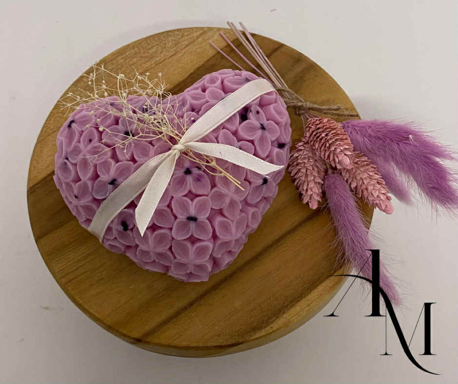 Ce superbe grand cœur fleuri, disponible en bougie ou en fondant parfumé, est parfait pour ajouter une touche d'élégance et de romantisme à votre maison.