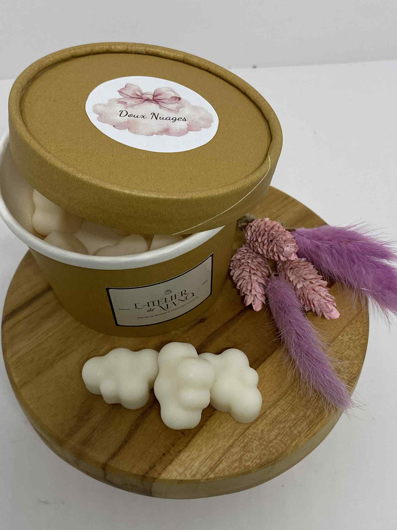 Les doux nuages sont des mini fondants parfumés qui offrent une expérience olfactive douce et relaxante. Avec leur parfum délicat et leur texture fondante, ils créent une ambiance apaisante dans n'importe quelle pièce.