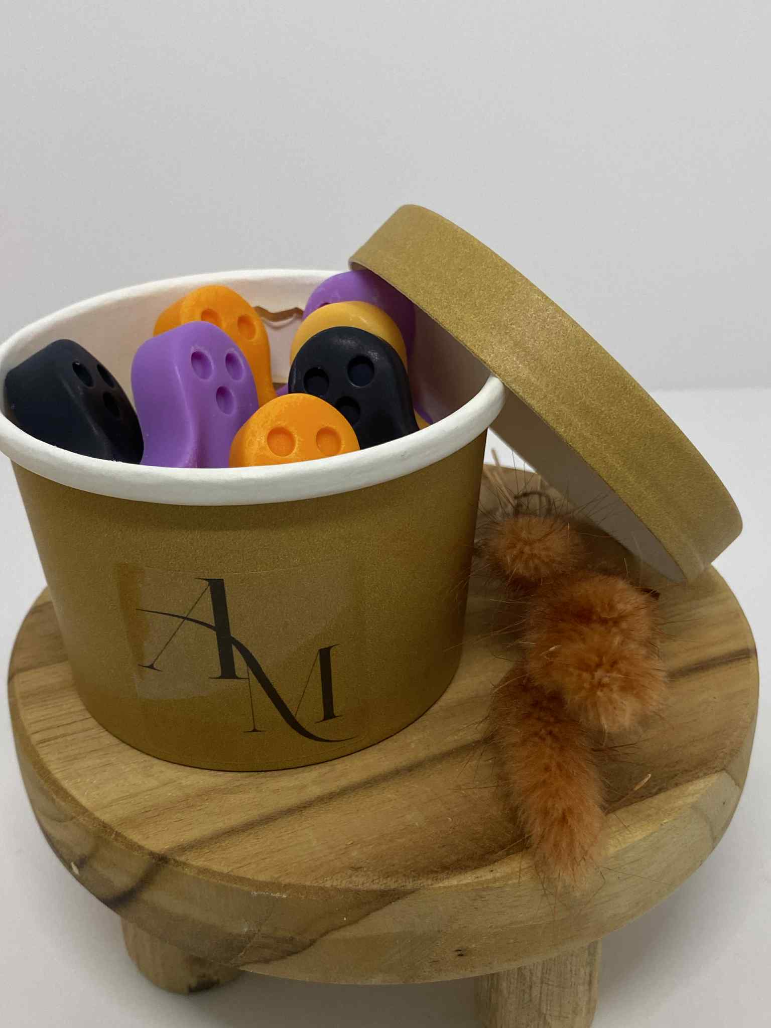 Découvrez la magie de La boîte hantée remplie de mini-fondants parfumées. Choisissez votre parfum et vos couleurs pour créer l'ambiance parfaite. Offrez-vous un voyage olfactif inoubliable (et peut-être effrayant)!
